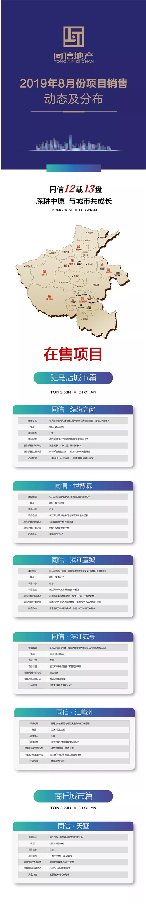 同信地產(chǎn)|2019年8月份項目銷售動態(tài)及分布